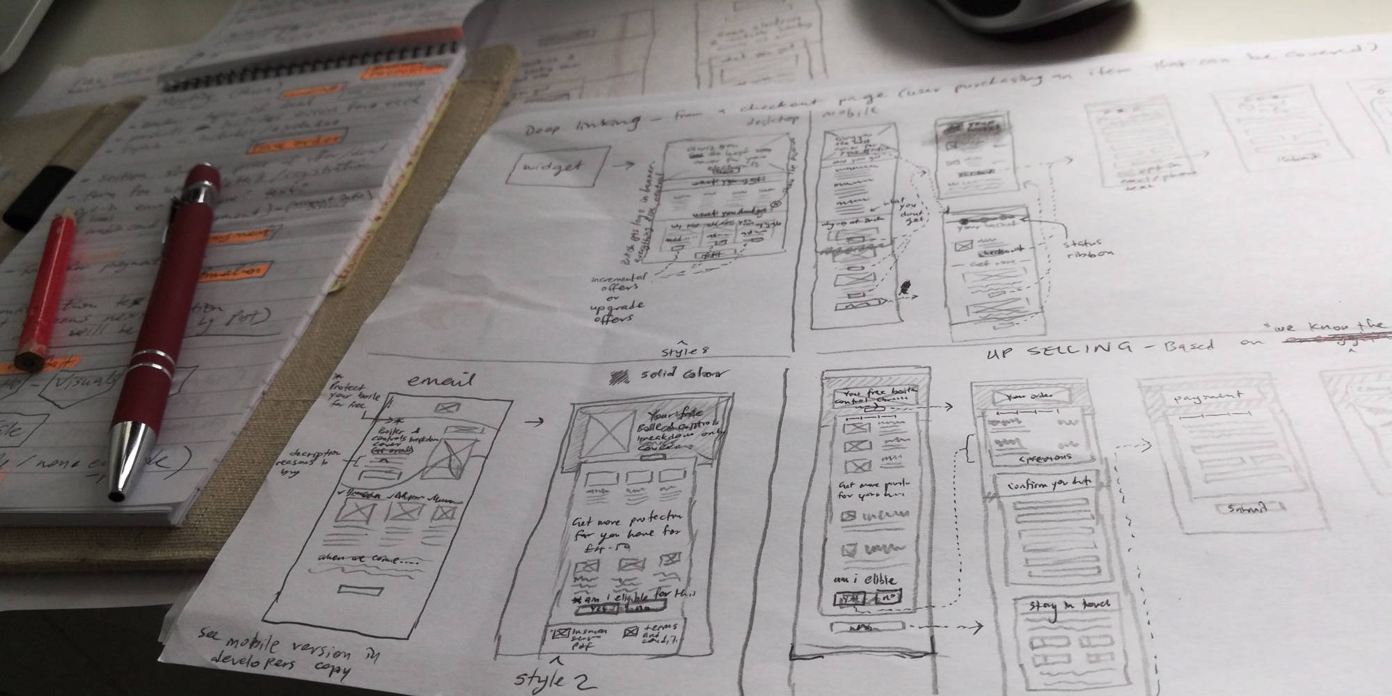For the research phase the team had a lot secondary research data available to pull from. This was coming from recent British Gas (BG) projects that shared the same user types within the site and related to similar products. Never-the-less we still insisted on gaining direct link to typical users to performe the user interviews. From these, we percieved that the call to action buttons where poorly labelled and often appeared at the wrong place. Also colour was poorly used to guide the users intuition, in terms of highlighting important sections. we kept records of these and other critical points which would be presented and shared with team and stakeholders when concluding the research.