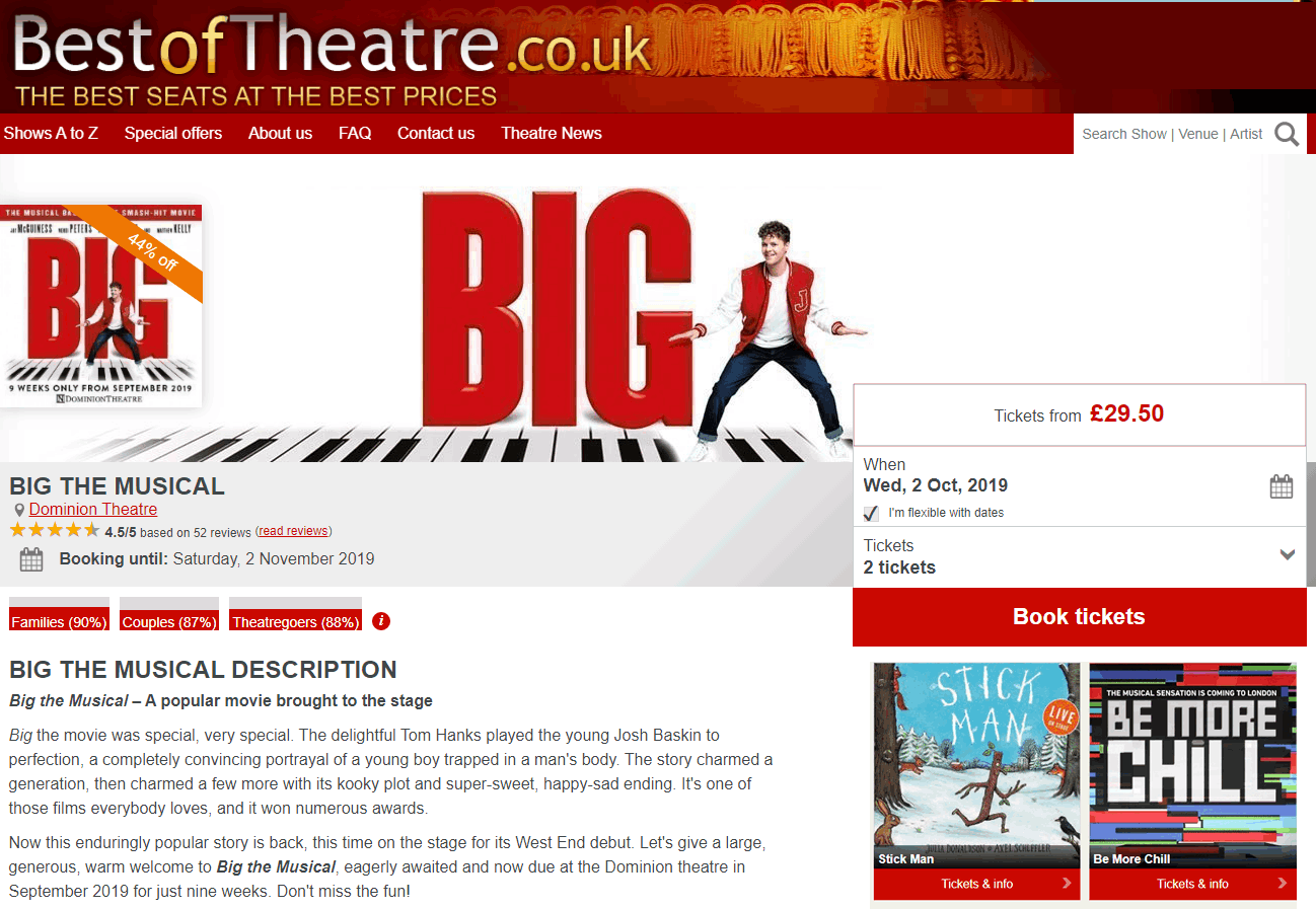 Best Of Theatre (Which is owned by Encore Tickets) was an initiative to drive sales back to the business at a time when competition for ticket sales was rife. The business ran other brands (like LondonBreaks and TheatrePeople) that were performing poorly with less conversion than the competition. This would eventually affect its turn-over. Hence the project was charged with creating a new brand concept that will lead to securing a better share of a market that is worth over 2billion yearly. The business hadn't considered revamping the older website brands because they now had plenty of negative reviews in a number of forums and discussion boards. I worked as the UX designer and was involved from the very beginning where we selected a name. Naming is a very important part of brand creation and could play a part in its success. We wanted one that will be meaningful as well as memorable for the consumer - "Best Of Theatre".