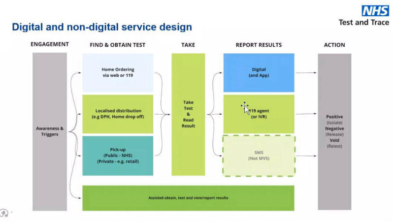 There were twelve teams or squads in the program, with each team having its own area of focus which could change depending on the progress of the overall program. My team consisted of seven members, charged with overseeing the introduction of the LFD (Lateral Flow Device) testing. This form of COVID-19 testing enabled users to order their test kits which are then self-administered at home for quicker results. We used agile methodology and had delivery targets with show-and-tell meetings attended by stakeholders that included ministers from the government. Our overall focus was to produce recommendations for LFD service delivery. which involved planning and mapping of both online and offline journeys for the customer.