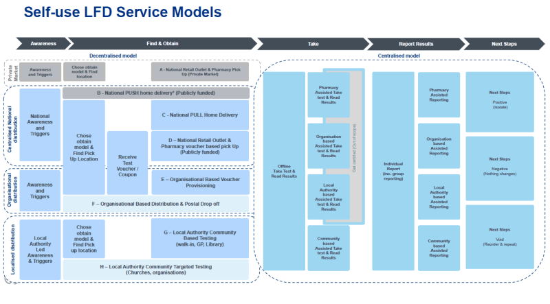 1.. Online orders (or digital journey). This option enabled customers to order their LFD test kit for delivery to their home or specified location. It was a very important option as it encouraged users to stay at home and not exposing themselves to contracting the disease.